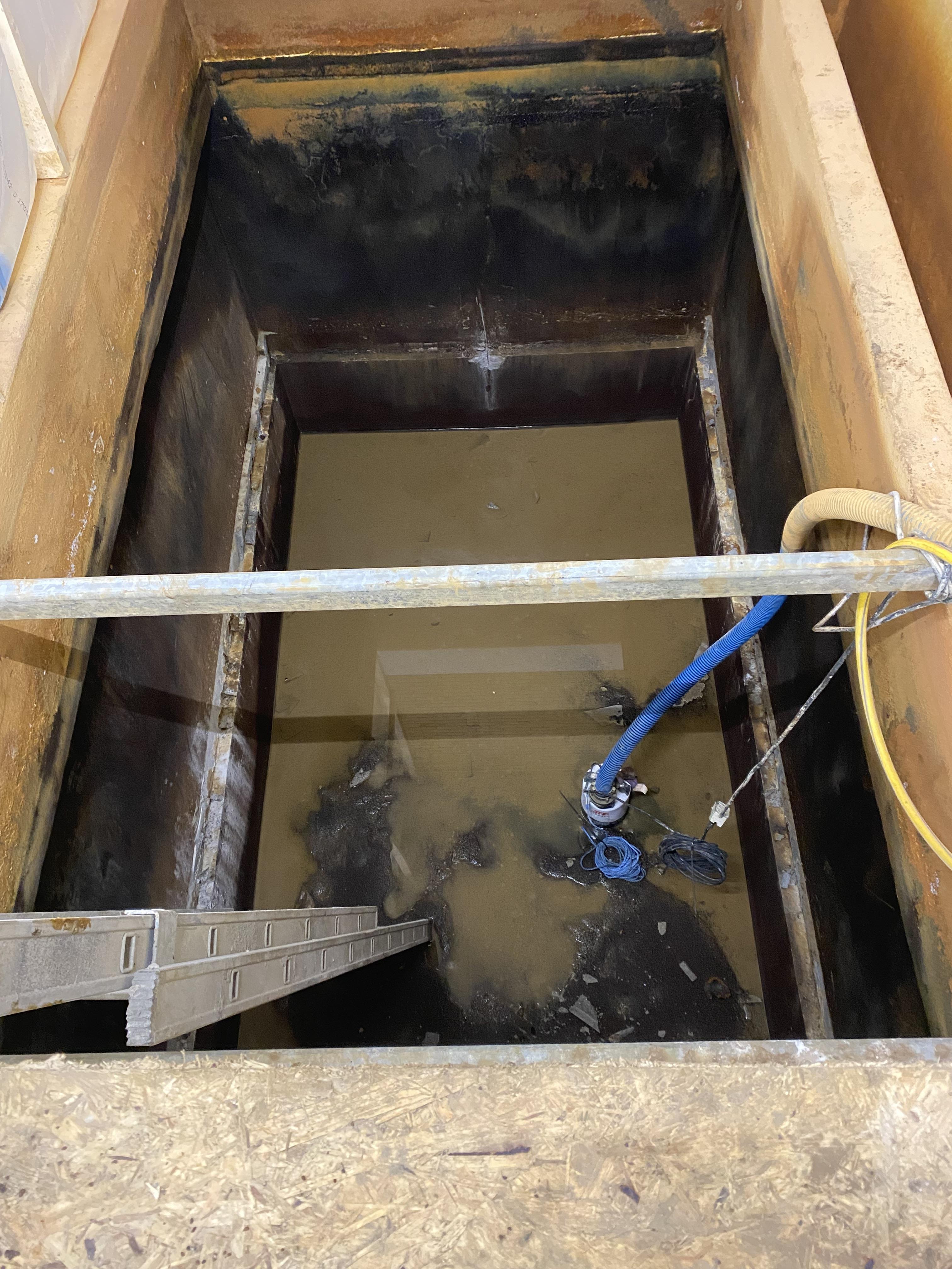 Herunder ses billeder af et tømt filter klar til at blive renoveret med nye spalter og div. rør
